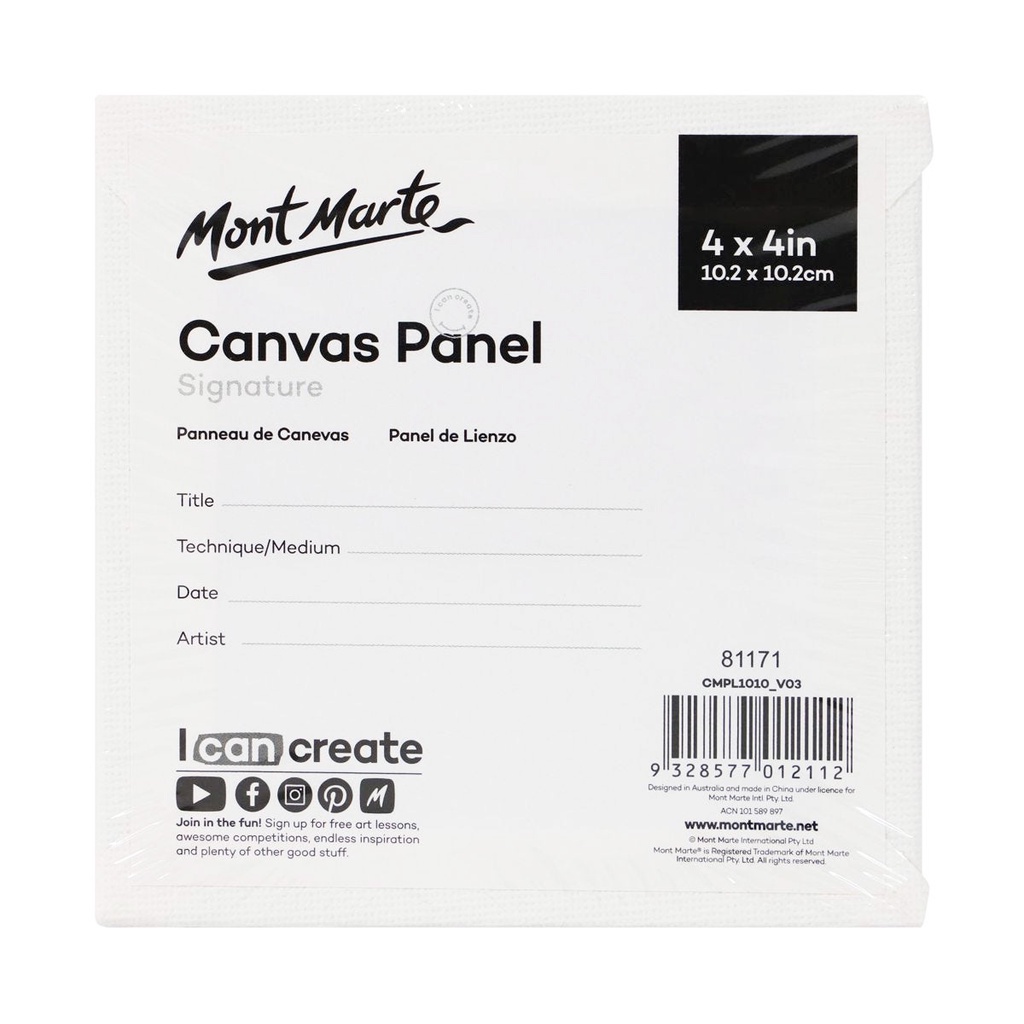 Bộ 5 Tấm Canvas Panels 10.2x10.2cm Mont Marte - Canvas Panels Signature 5pc 10.2x10.2cm - CMPL1010