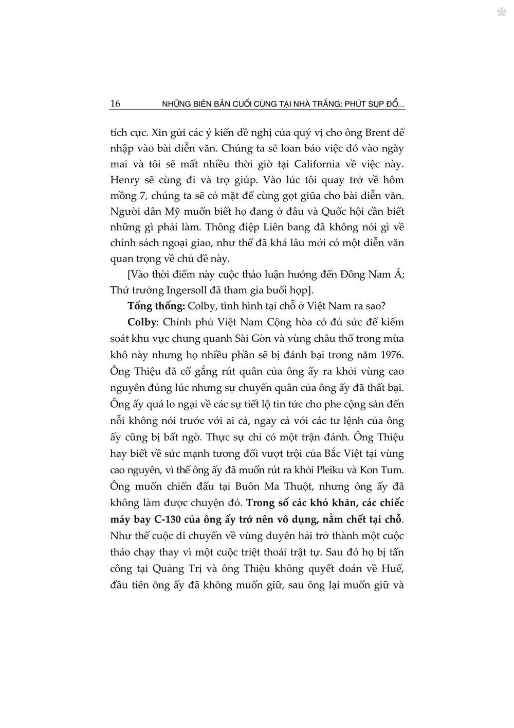 Cuốn sách Những biên bản cuối cùng tại Nhà Trắng: Phút sụp đổ của Việt Nam Cộng hòa gồm hai phần: