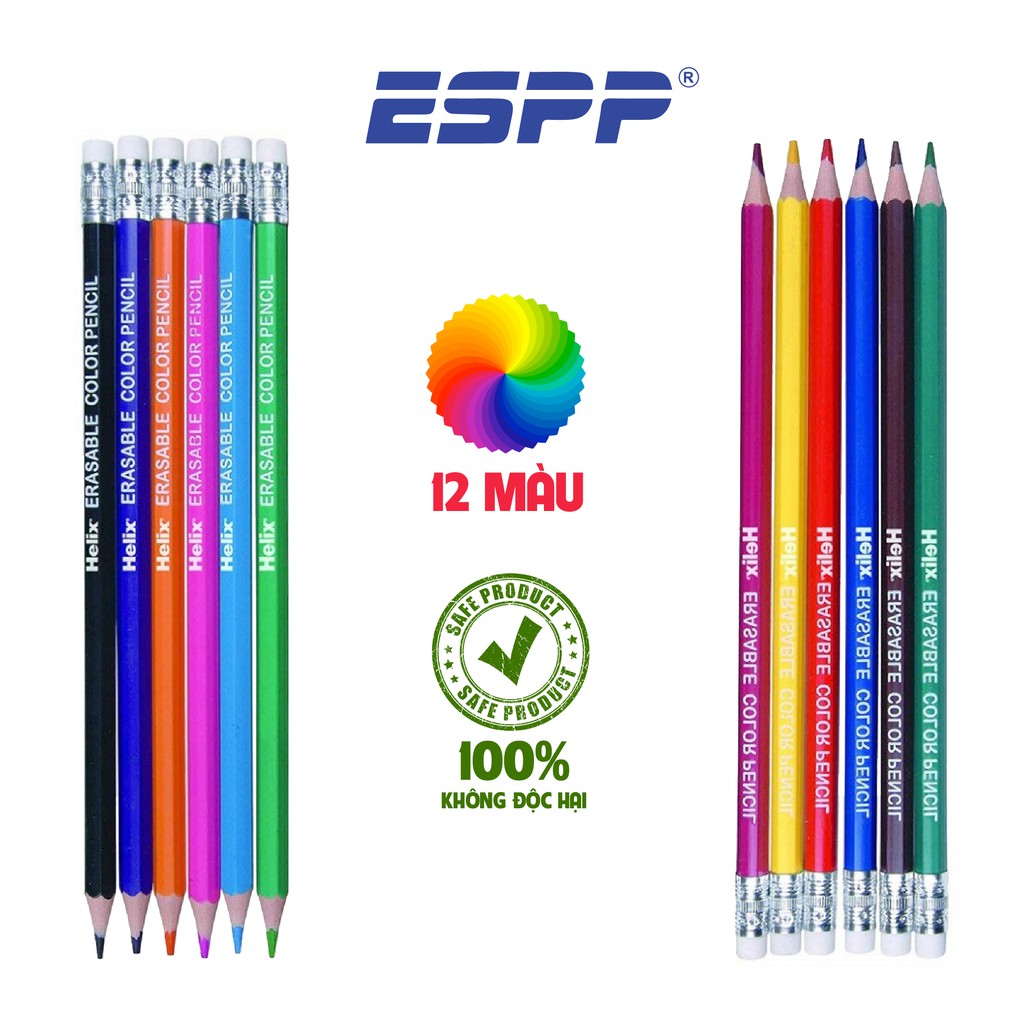 Văn Phòng Phẩm > Bút Các Loại > Dụng Cụ Tẩy Xoá || Bút viết chì màu có thể Gôm Tẩy Xóa được HELIX 12 Màu