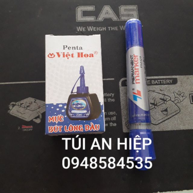 Combo 1 bút và 1 lọ mực lông dầu, cùng màu thay thế | Combo permanent marker and ink