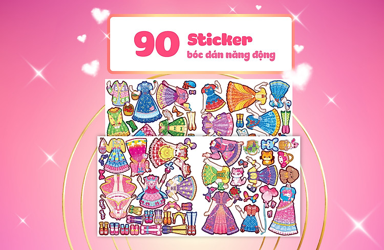 - Hơn 90 Stickers gồm trang phục, phụ kiện cùng những bối cảnh lung linh rực rỡ biến các con trở thành nhà thiết kế thời trang, có thể thỏa sức sáng tạo bằng sự hiểu biết và nhận thức riêng của mình