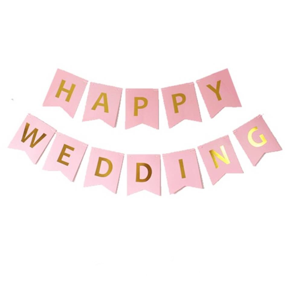 Giới thiệu Dây cờ chữ Happy Wedding ánh kim trang trí phòng cưới