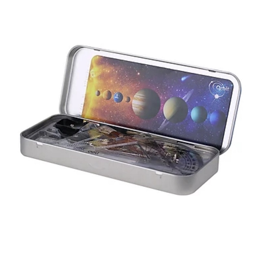 Bộ dụng cụ học sinh hộp sắt 9 món Deli 30695 / Bộ Eke compa G30695 sử dụng chì gỗ
