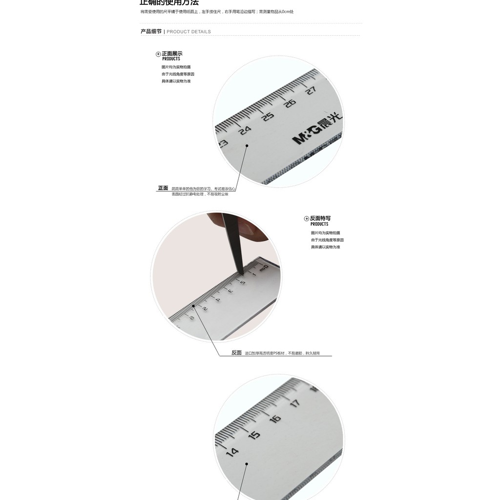 Thước được làm từ nhựa trong suốt, dẻo, bền, không dễ gãy khi uốn cong. Do được làm từ nhựa dẻo nên thước có độ bền cao hơn, trẻ em sử dụng cũng an toàn hơn.