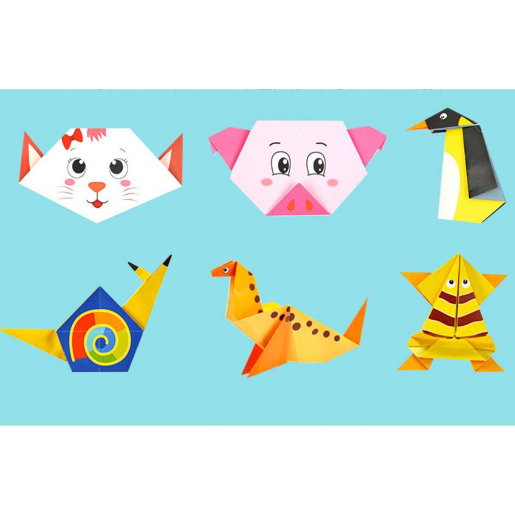 - Ngoài ra có 1 quyển sách in màu hướng dẫn từng bước cách gấp từng hình, con vật, đồ dùng,....
