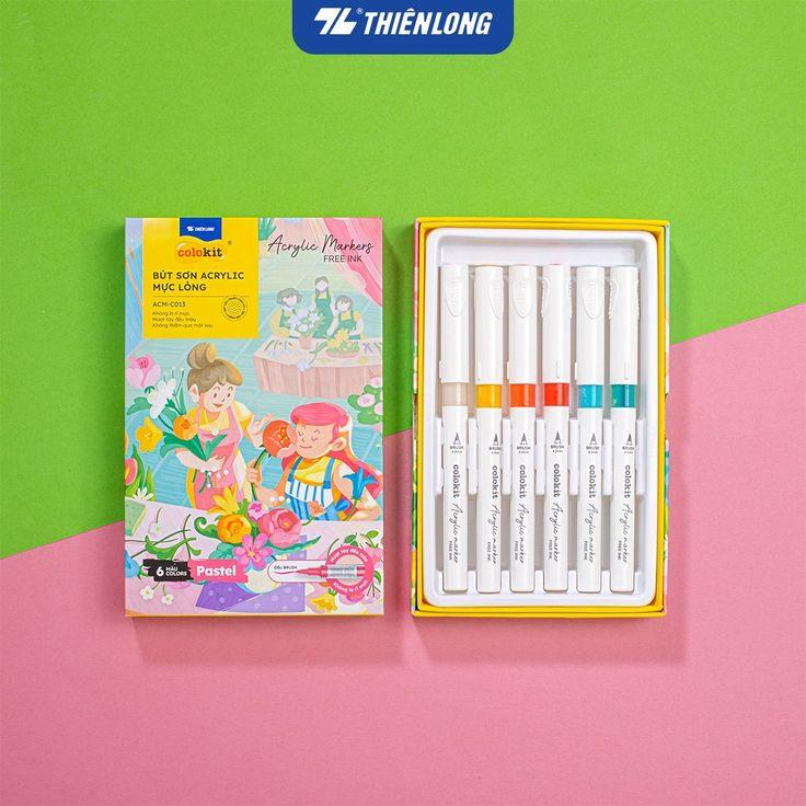 Bút sơn Pastel Acrylic Markers Thiên Long Colokit 6/12/24 màu với thiết kế đầu BRUSH linh hoạt đáp ứng được đa dạng nhu cầu sử dụng. Bút màu Acrylic khô nhanh, chống nước tốt và sử dụng được trên nhiều chất liệu như giấy, vải, nhựa, gốm…
