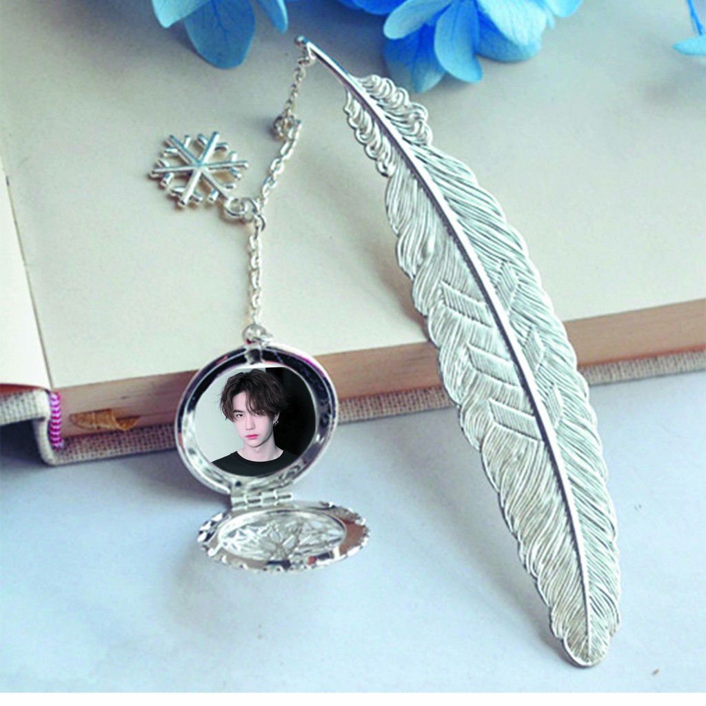 ( không kèm hộp ) Bookmark lông vũ gắn điệp in hình ĐẶNG LUÂN DƯƠNG TỬ CÚC TỊNH Y kim loại mỏng