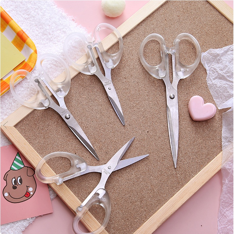Văn Phòng Phẩm > Thiết Bị Trường Học > Kéo || Kéo cắt giấy thủ công cán tay trong suốt phong cách Hàn Quốc