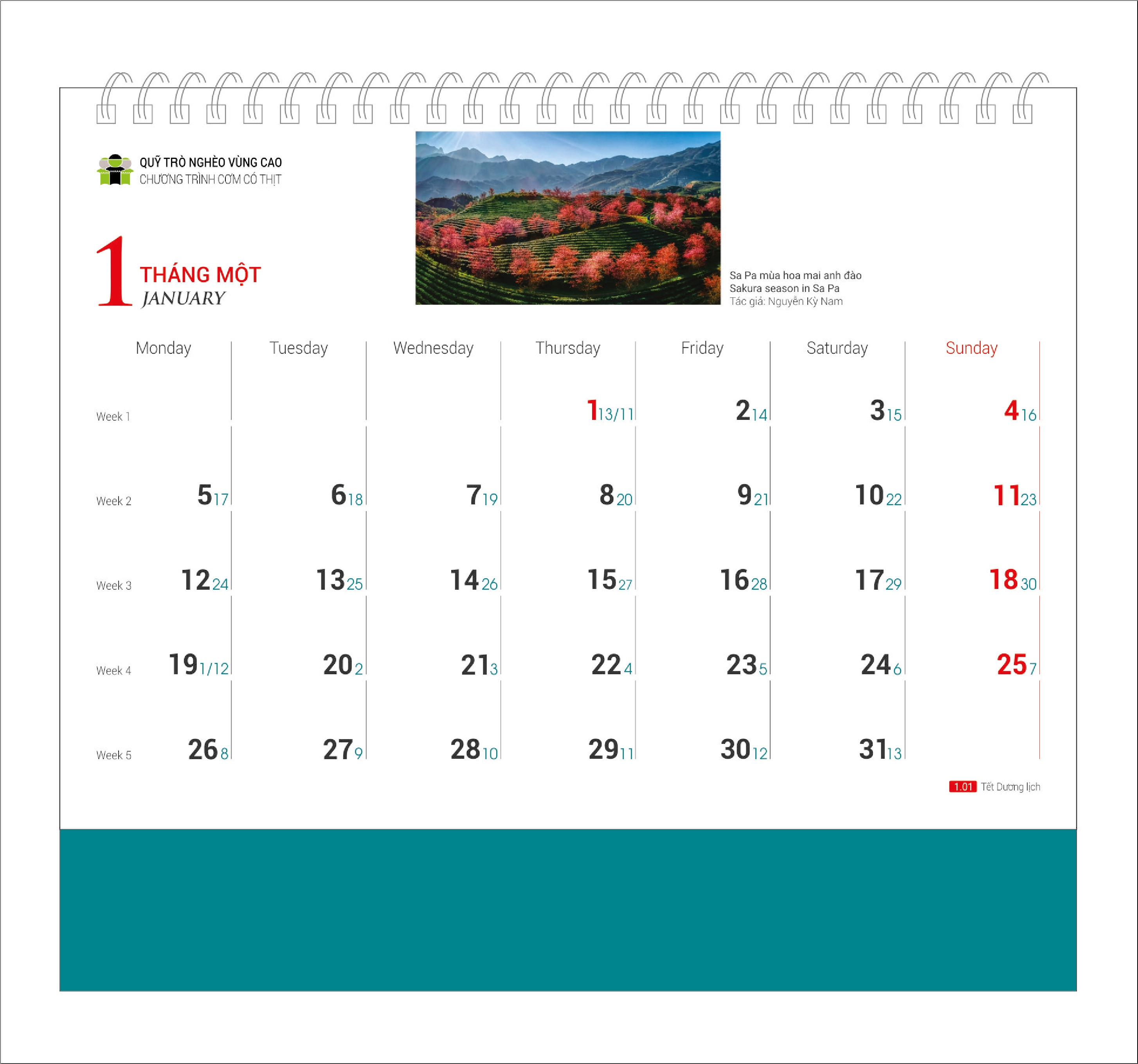 LỊCH ĐỂ BÀN PHONG CẢNH VÙNG CAO 2026 - LỊCH GÂY QUỸ TỪ THIỆN CƠM CÓ THỊT