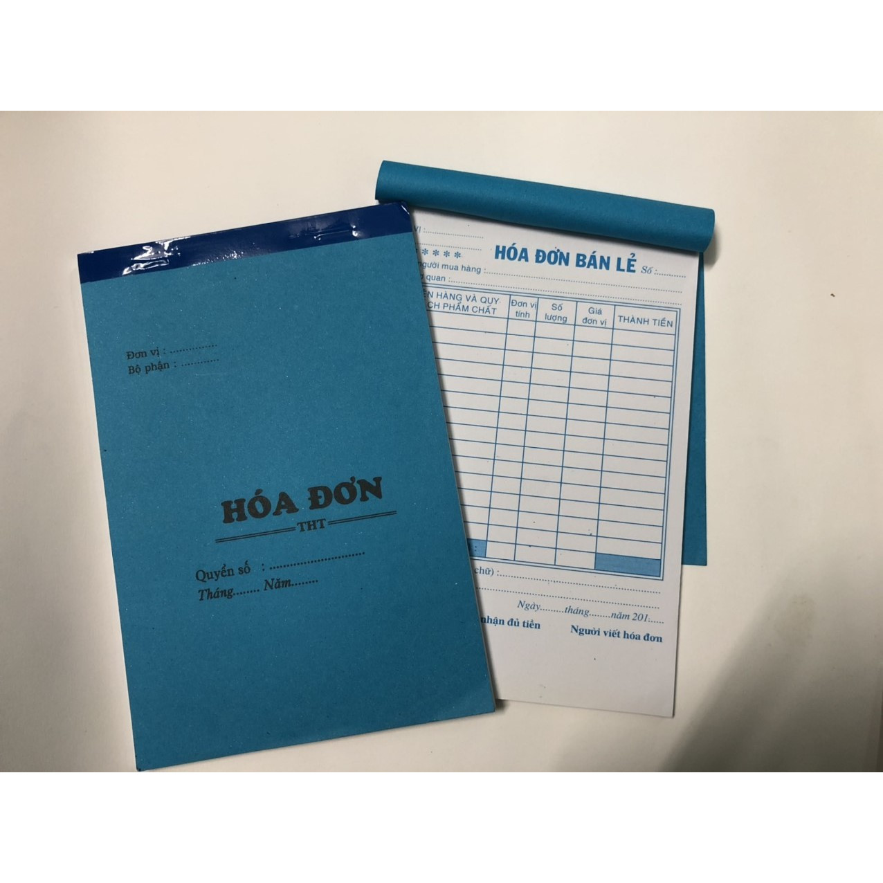 Hóa đơn bán lẽ giấy ford định lượng 65, cuốn 50 tờ, bấm kim đóng cuốn, răng cưa đầu quyển rất dễ xé ra.