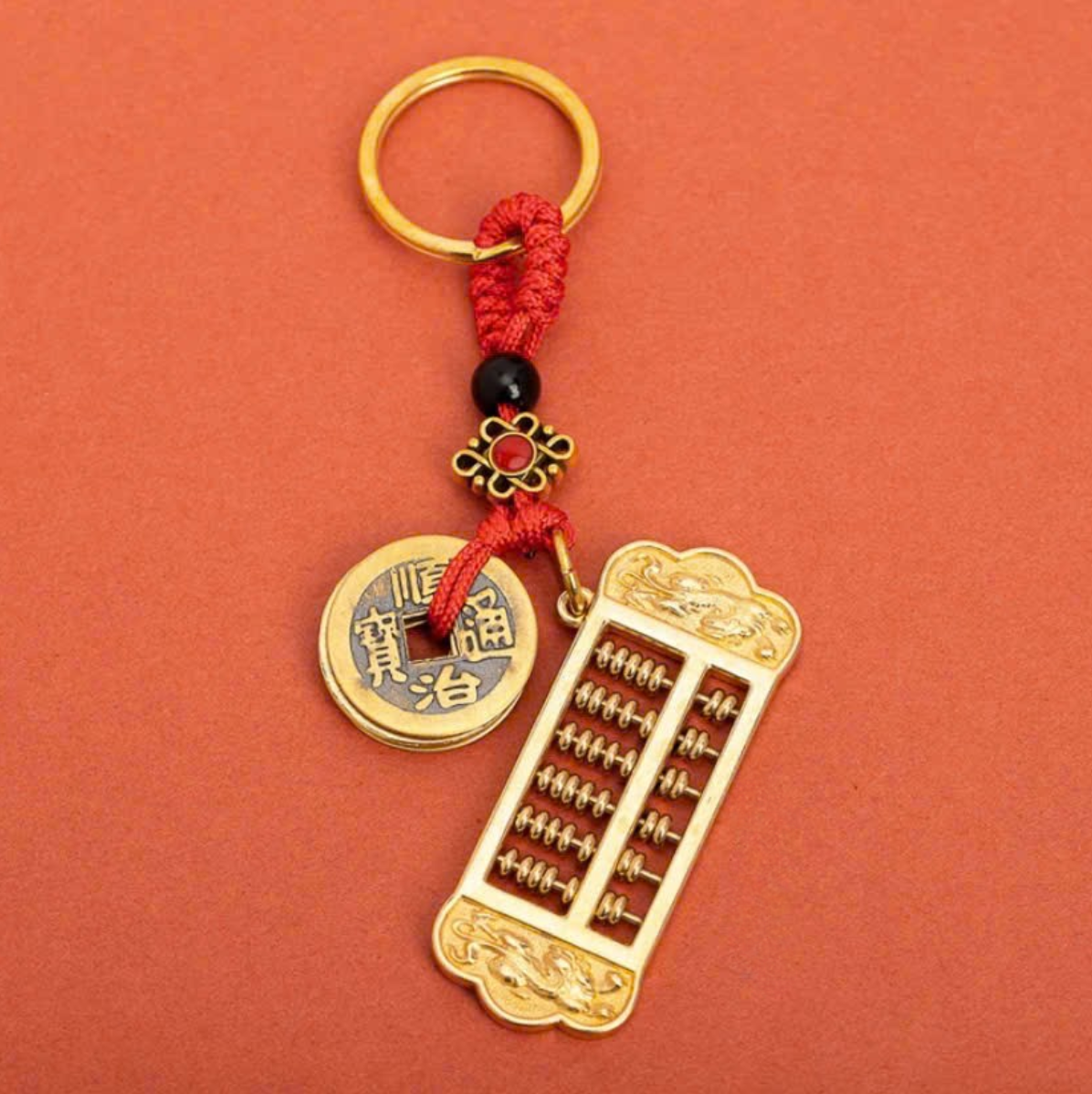 Móc Khóa Đồng Thâu, Đồng Xu Phong Thủy Bàn Tính Di Động, Chạm Khắc Rồng, Phượng, Lân Thu Hút Tài Lộc