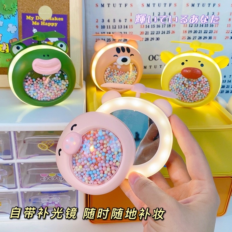 Văn Phòng Phẩm > Thiết Bị Trường Học > Khác || Quạt sạc kèm đèn led và gương hoạt hình xinh xắn