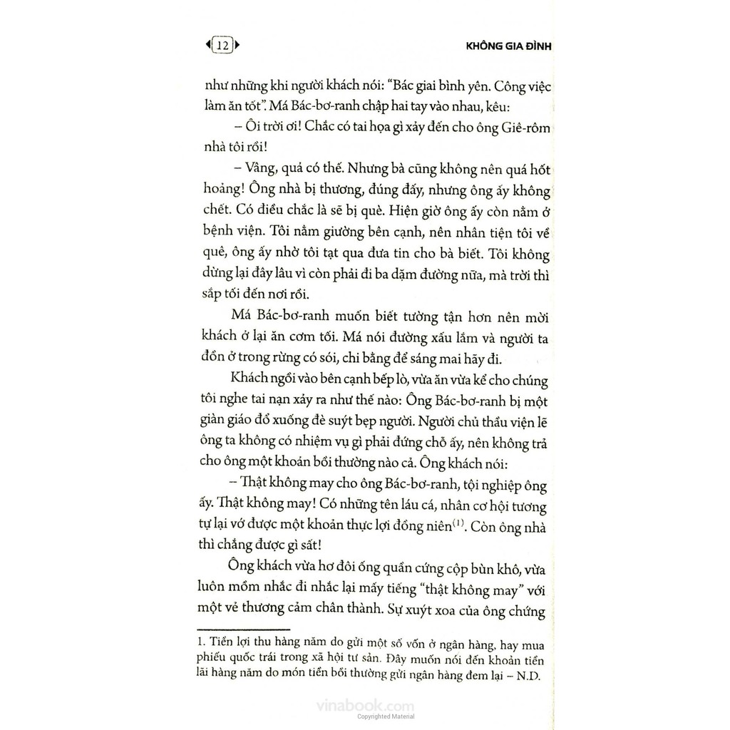 Không Gia Đình là cuốn sách được xếp vào danh mục văn học thiếu nhi nhưng rõ ràng, với những gì Không Gia Đình đã kể thì đây là cuốn sách dành cho mọi lứa tuổi ở mọi quốc gia, mọi tầng lớp.