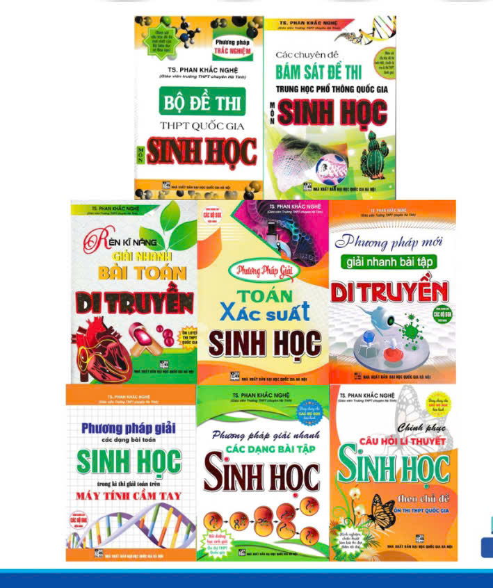 Combo Sách Của Phan Khắc Nghệ (Bộ 8 Cuốn) gồm 8 cuốn sách luyện thi môn Sinh học sẽ giúp các em thành thạo các kỹ năng giải nhanh bài tập môn Sinh học, tiết kiệm thời gian và đạt kết quả cao cho kỳ thi THPT Quốc gia cận kề.