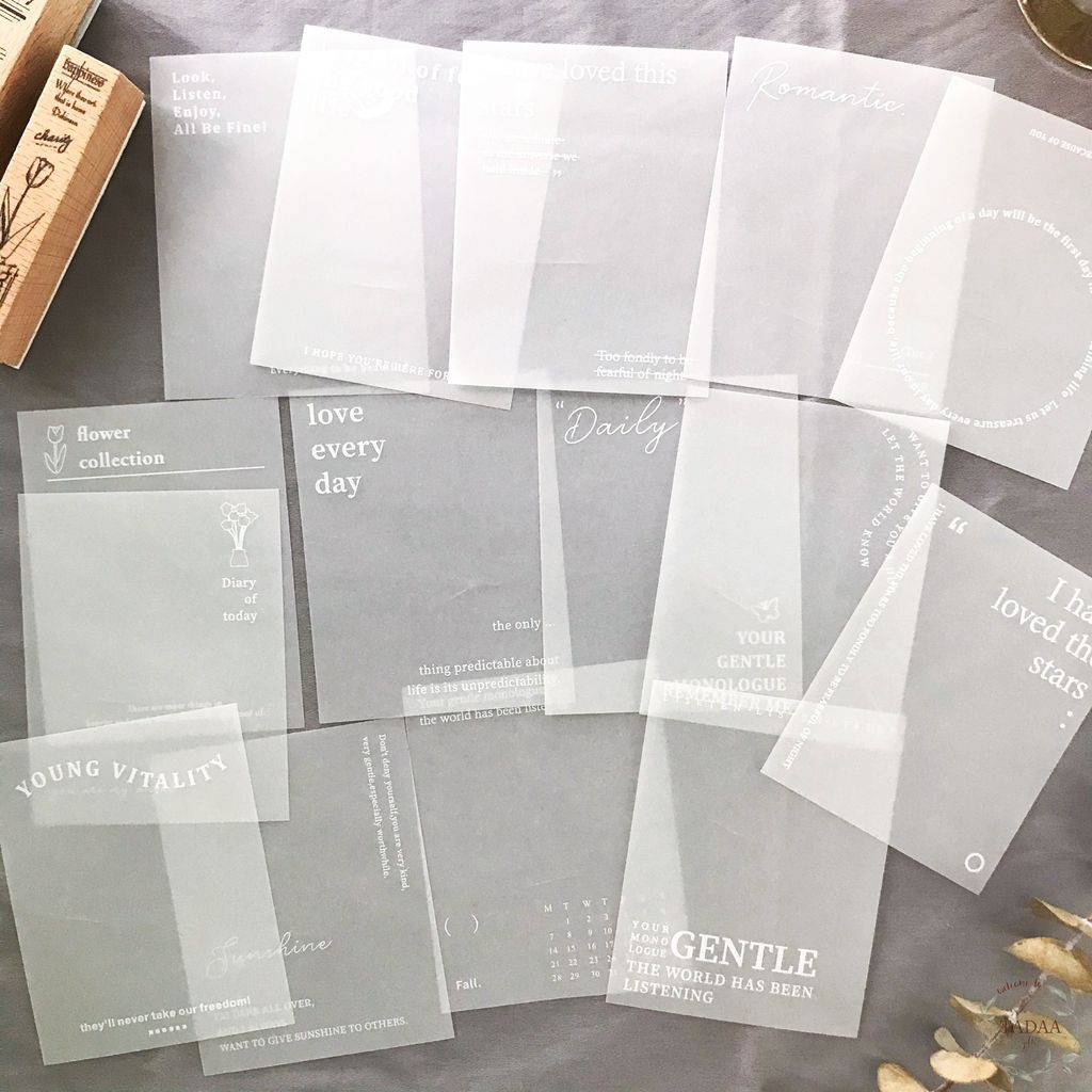 Set 15 giấy trắng mờ hoa và mood diary trang trí sổ retro