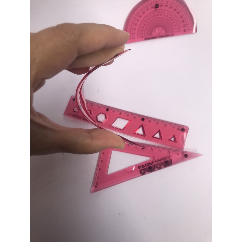 Bộ thước kẻ dẻo 4 món Stacom FR102S, có 4 màu: xanh lá, xanh dương, hồng, tím, kèm túi bấm tiện lợi