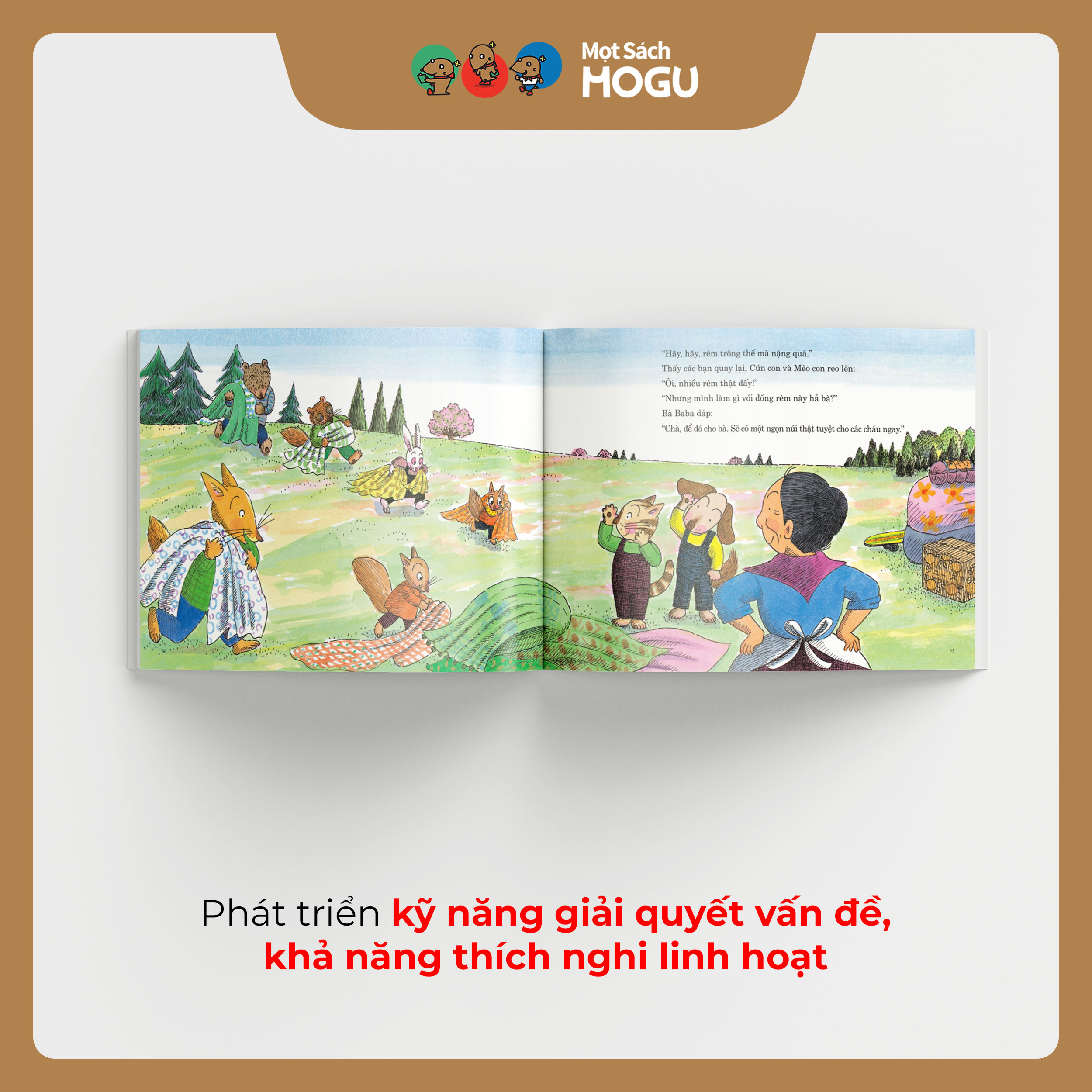 - Minh họa sinh động, tươi sáng, tái hiện chân thực khung cảnh đời thường đầy gần gũi, giúp trẻ dễ kết nối với tuyến nội dung.