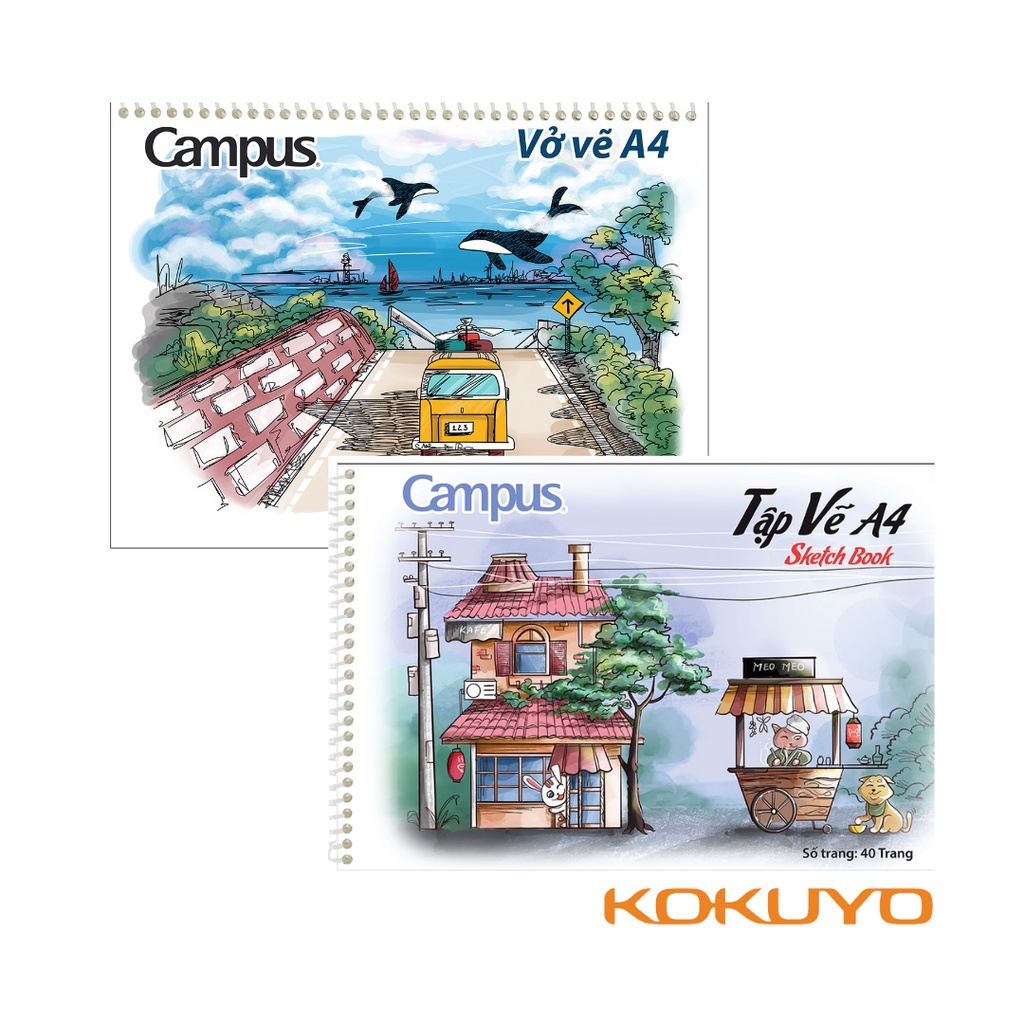 Giới thiệu Vở Vẽ Gáy Lò Xo A4 40 Trang SKB-A4 Hình Phong Cảnh Campus Cây Đầu To